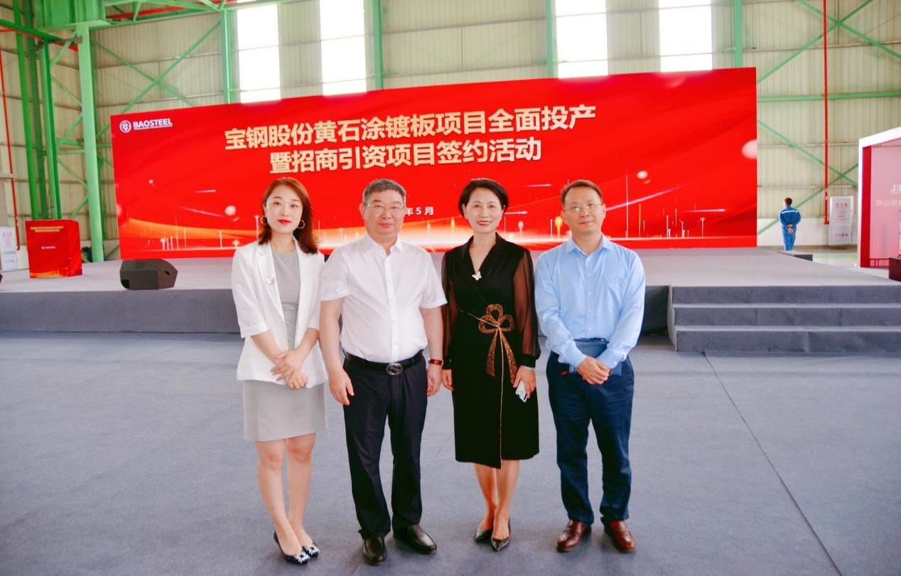 董事長劉國民和寶鋼股份黃石涂鍍板有限公司總經理助理兼制造部部長劉浩洲(左三)